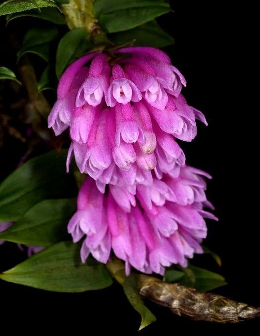 Dendrobium aurantiiroseum is endemic to New Guinea, growing epiphytically in loose moss in shady, mountain habitats from 2,100 to 2,250 meters (6,900 to 11,000 feet) that blooms in the winter and spring. Though beautiful, this species is reportedly very slow-growing and difficult to cultivate. Growing conditions should be maintained year-round. Photographer: Ron Parsons (www.flickr.com/photos/rpflowershots Grower: John Leathers Info: Charles Baker culture sheet www.orchidculture.com