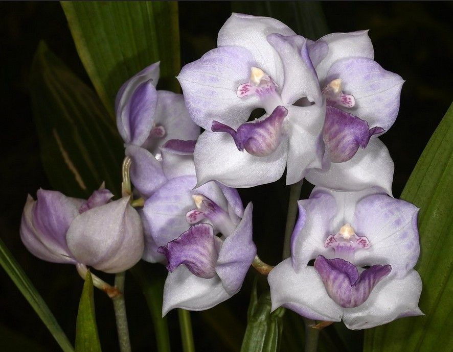 Aganisia cyanea is found in Brazil, Colombia, and Venezuela as an epiphyte at 100 to 500 meters (328 to 1,640 feet) in flat, low-lying forests in areas completely inundated during seasonal floods. It blooms in late winter until summer with up to 10 fragrant blossoms. This orchid will thrive if given a hot, humid environment with lots of shade or dappled sunlight and room for the plant to expand. Mist daily while growing. Photographer: Ron Parsons (www.flickr.com/photos/rpflowershots Grower: Brookside Orchids Info: Internet Orchid Species Photo Encyclopedia www.orchidspecies.com and : Charles Baker culture sheet www.orchidculture.com